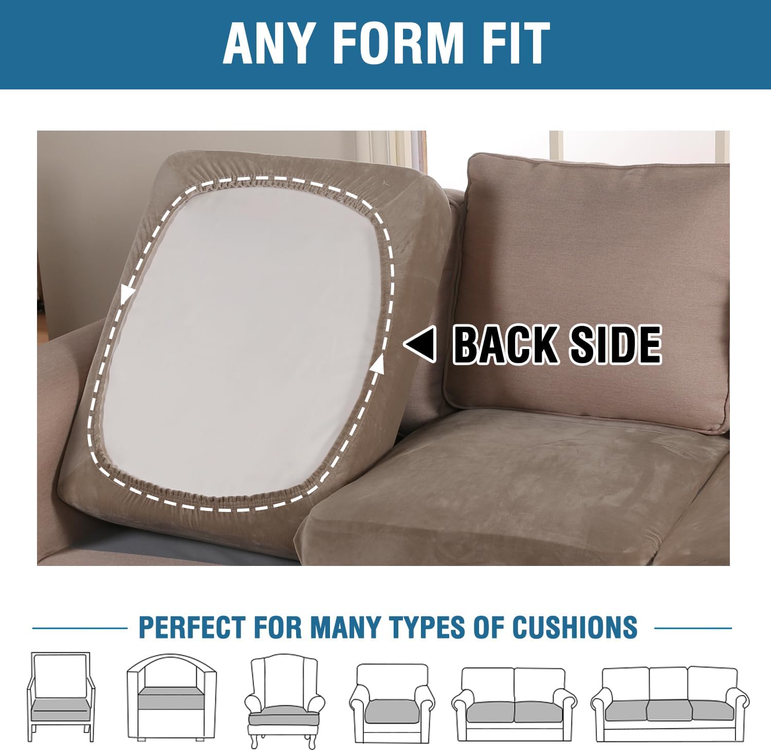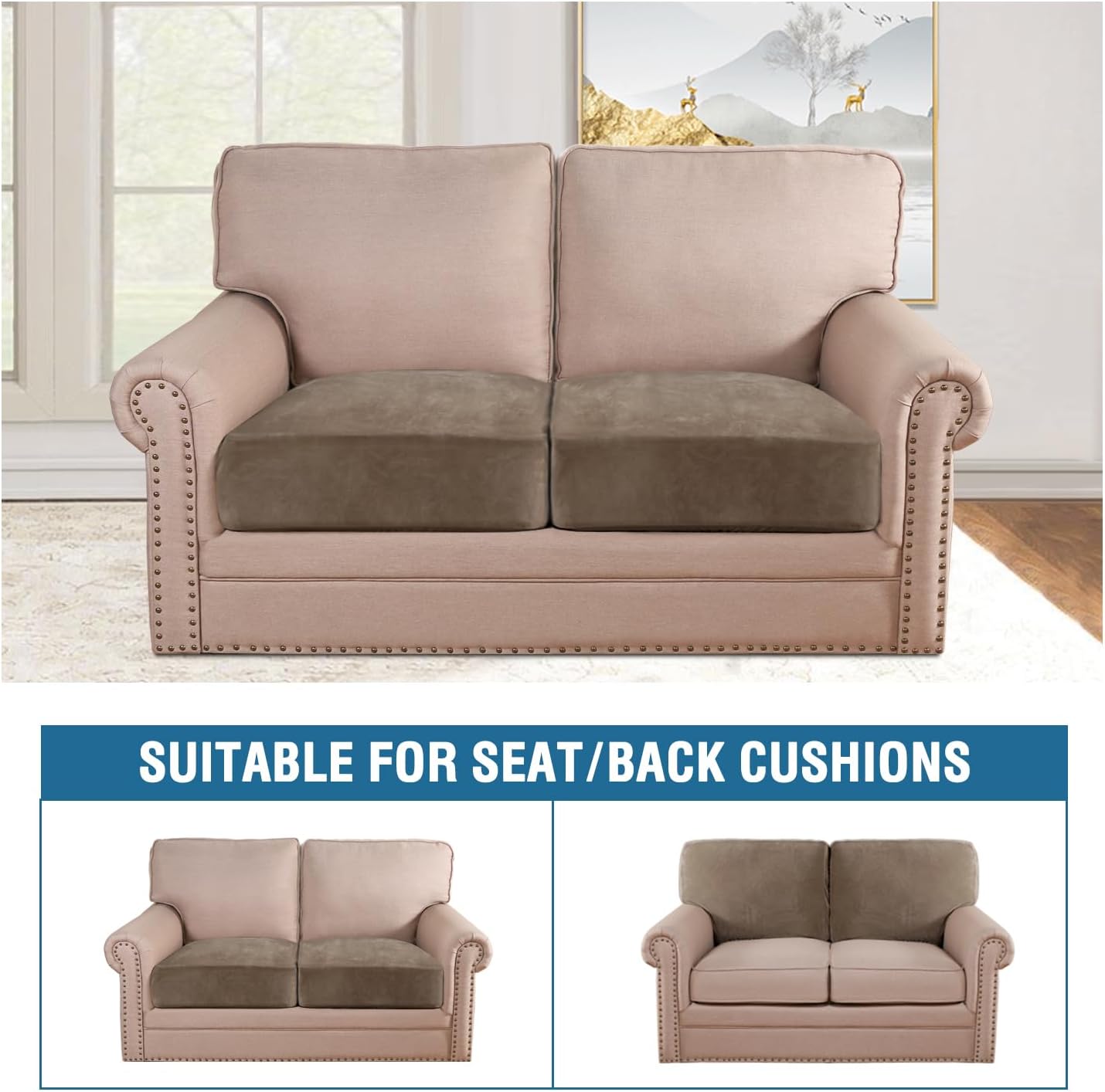 H.VERSAILTEX Velvet Stretch Couch Cushion Cover Plush Cushion Slipcover for Chair Loveseat Sofa Cushion Furniture Protector Seat Cushion Sofa Cover (2 Piece Medium Sofa Cushion Covers, Mocha)