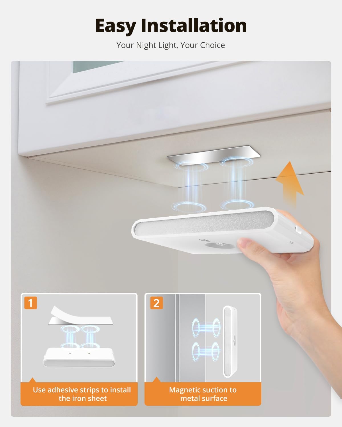 - 【Magnet Mounting Design】This motion light indoor is equipped with magnets and nano adhesive, and the back of the product has a magnetic suction design, so you can install it anywhere you need without drilling holes, which is convenient for you to install or remove it anytime and anywhere, eliminating the complicated installation process