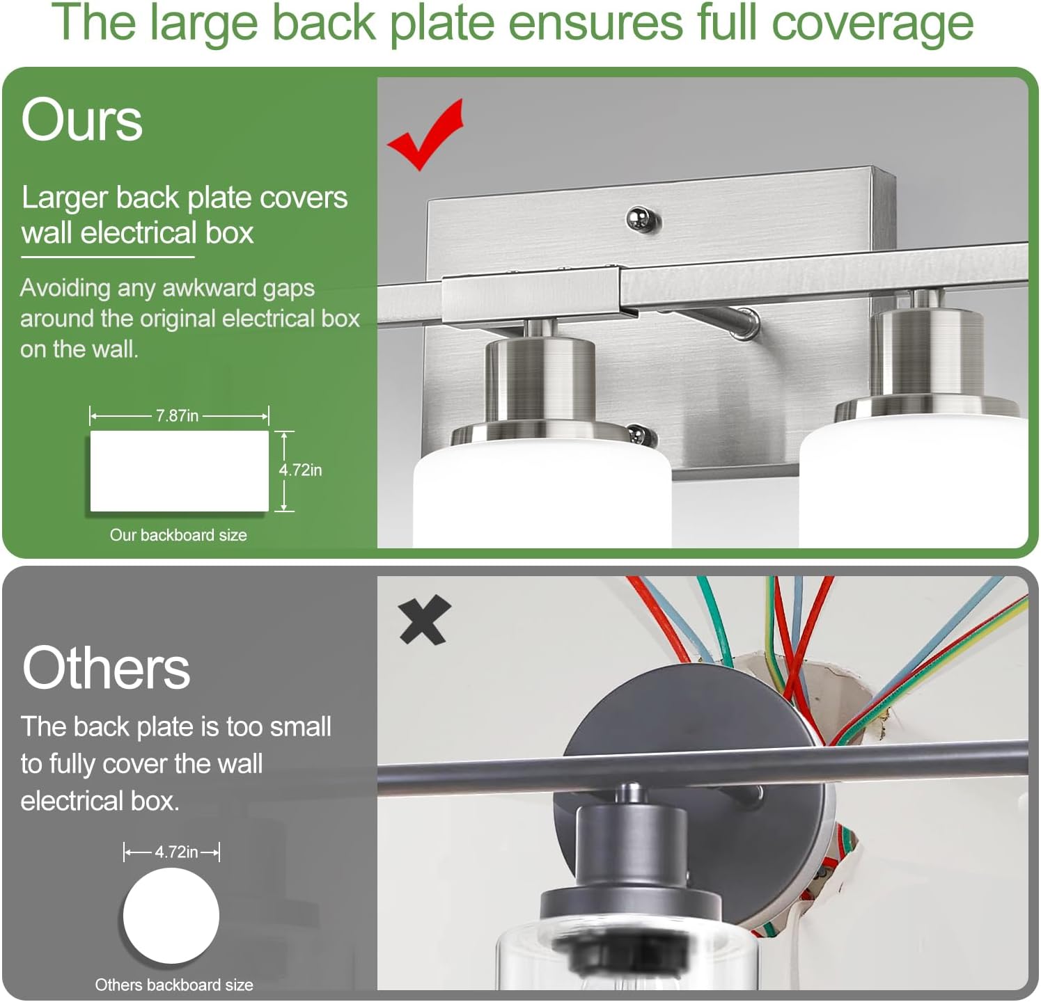 - Reversible Installation – Up or Down: Customize your look with versatile mounting options. Install upward for a soft, ambient glow or downward for more direct lighting. These vanity lights work great above mirrors, vanities, or entryways.