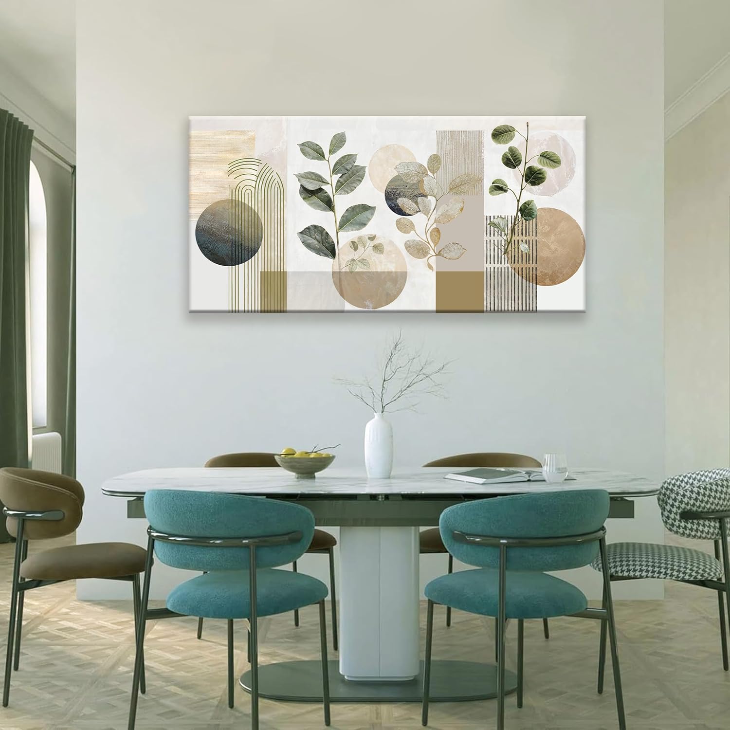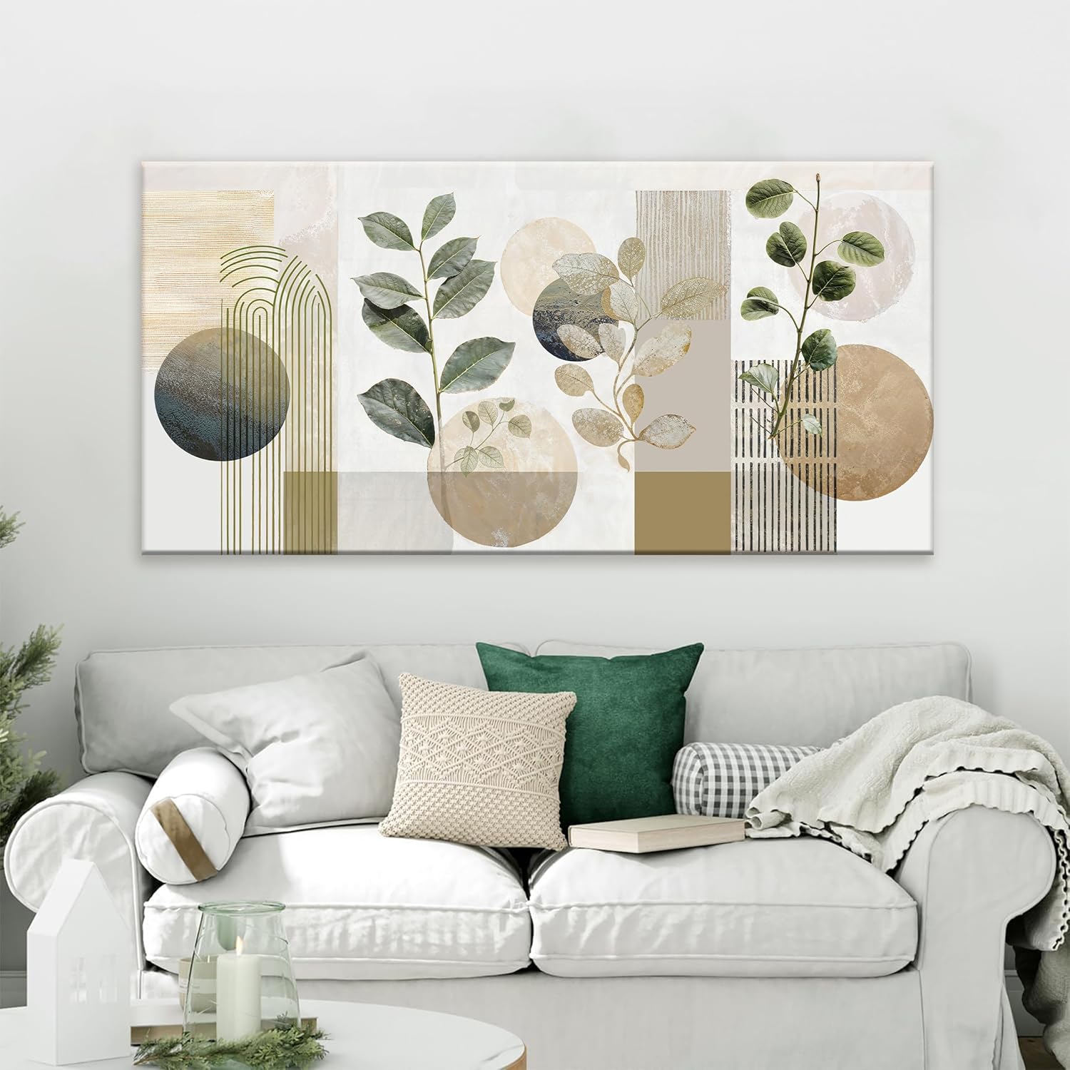 Boho Green Wall Art Mid Century Canvas Wall Art Decor Set Bohemian Abstract Wall Decor Modern Geometric Wall Painting Neutral Botanical Art Print Picture Living Room Bedroom Office Artwork 24"X 48"