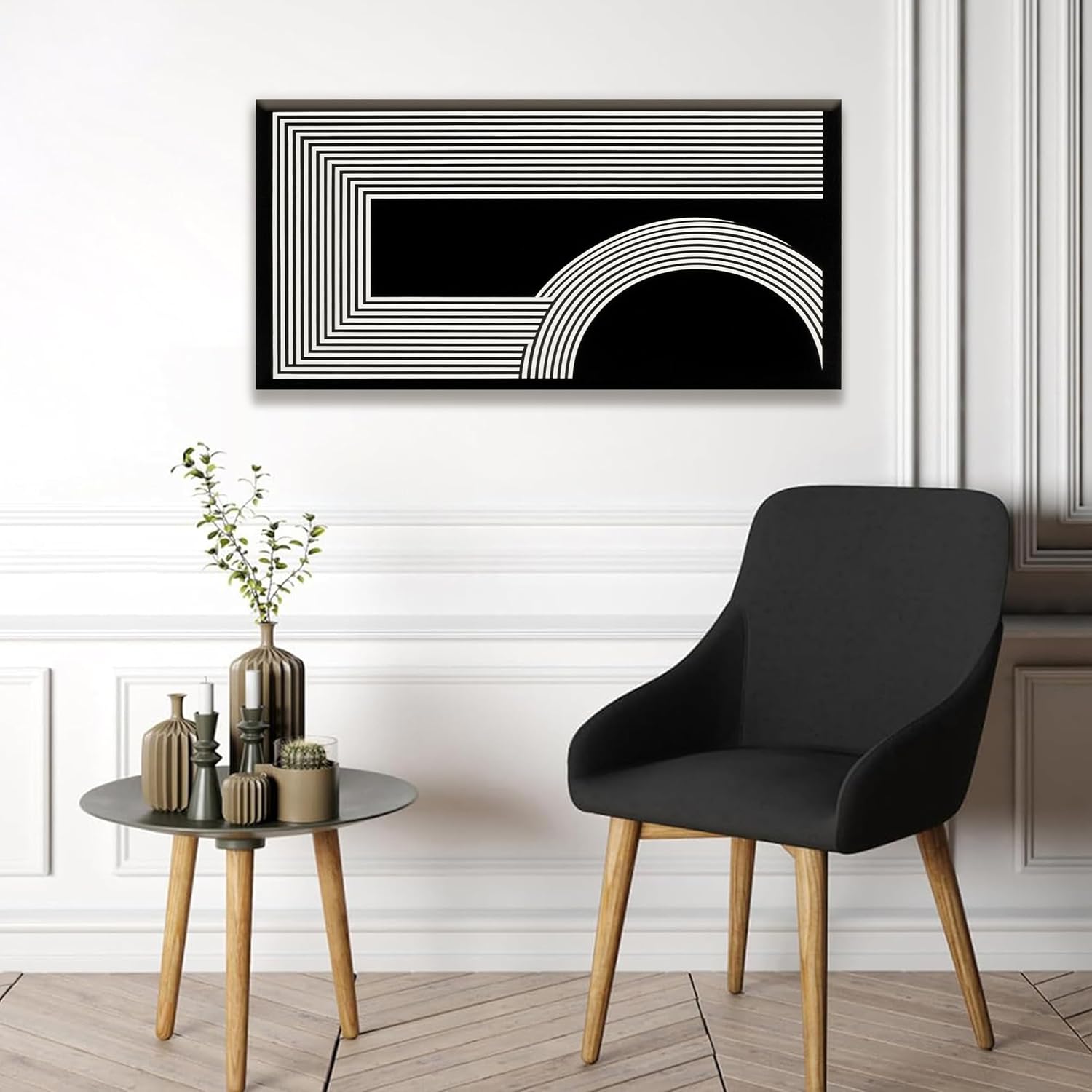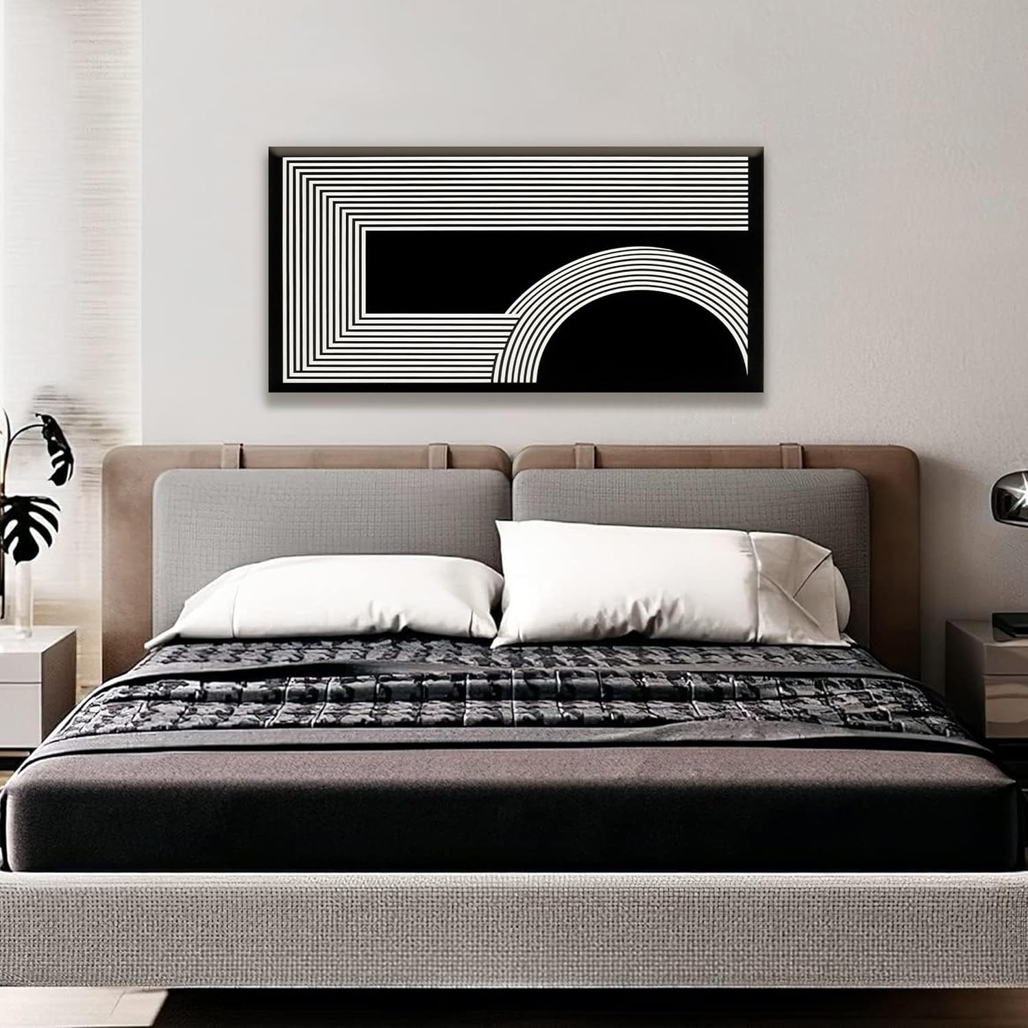 Abstract Wall Art Modern Canvas Art Wall Decor Minimalist Wall Art Geometric Line Canvas Artwork Print Paintings Black And White Wall Art Modern Picture For Bedroom Art Office Home Wall Decor 20"X 40"