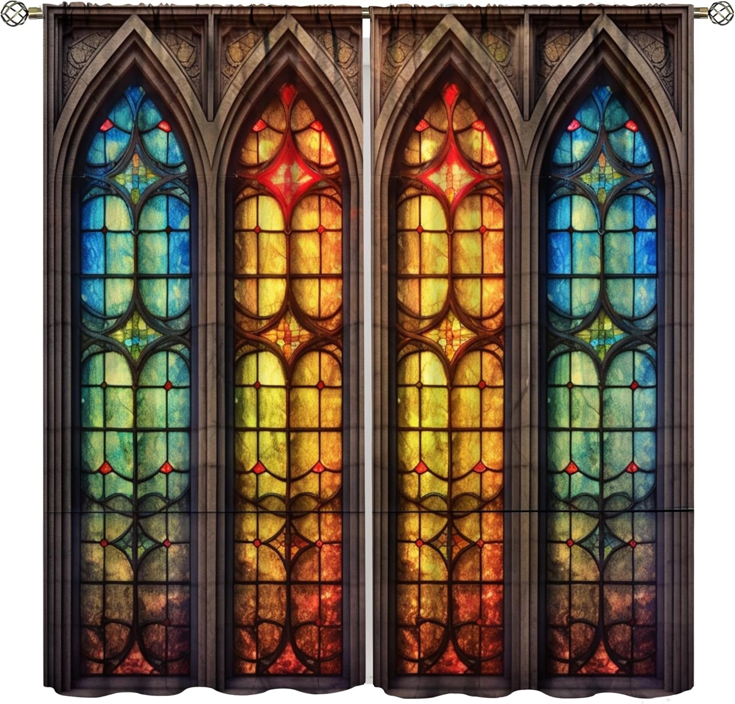 Stained Glass Curtains,Mid Century Vintage Style Abstract Art Home Decor Drapes for Bedroom Living Room Kitchen Window Treatment 2 Panels Set Total Size 84" W X 84" L Inch