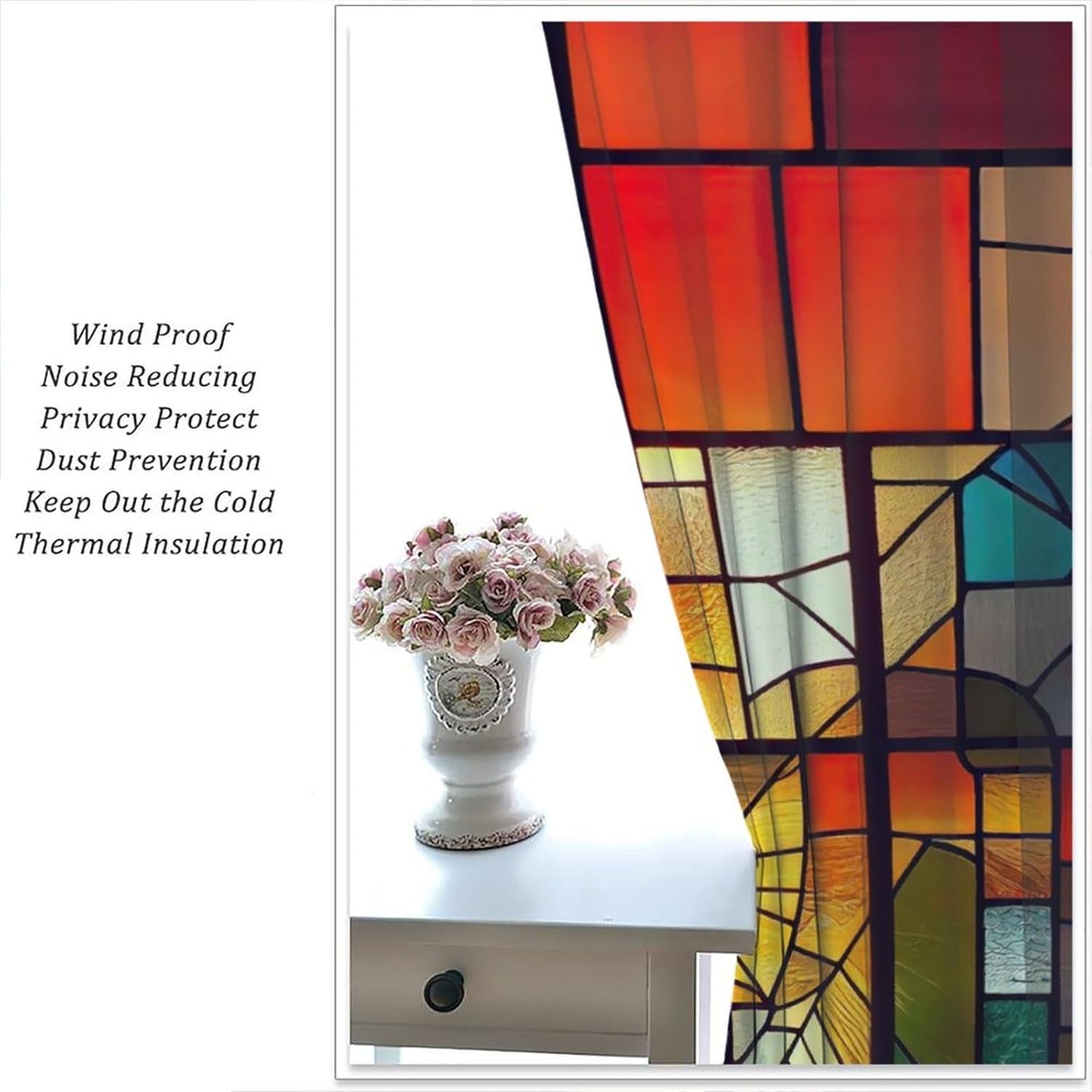 Stained Glass Curtains,Retro Abstract Colorful Geometry Textures Art Home Decor Drapes for Bedroom Living Room Kitchen Window Treatment 2 Panels Set Total Size 42" W X 63" L Inch