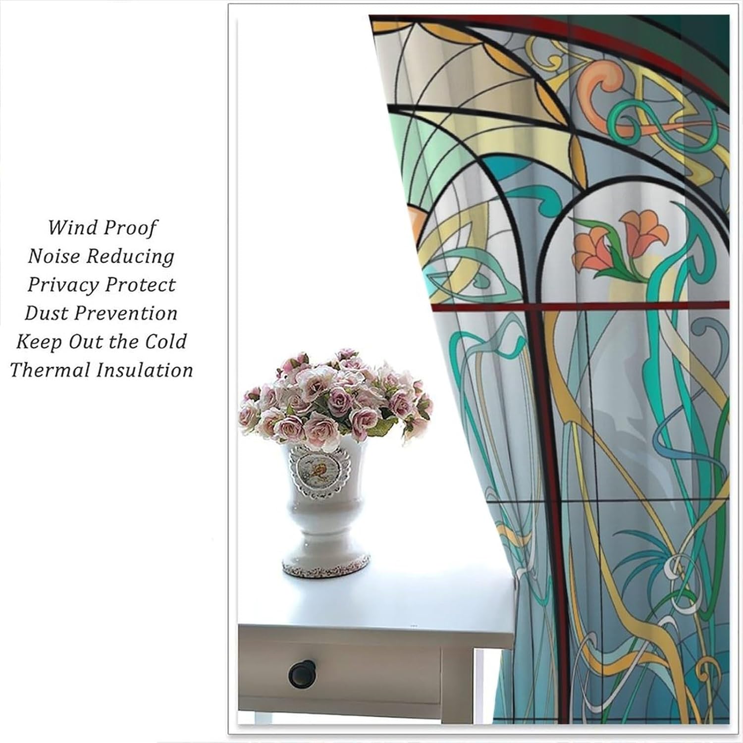 Stained Glass Curtains, Retro Mid Century Boho Abstract Art Home Decor Drapes for Bedroom Living Room Kitchen Window Treatment 2 Panels Set Total Size 42" W X 45" L Inch