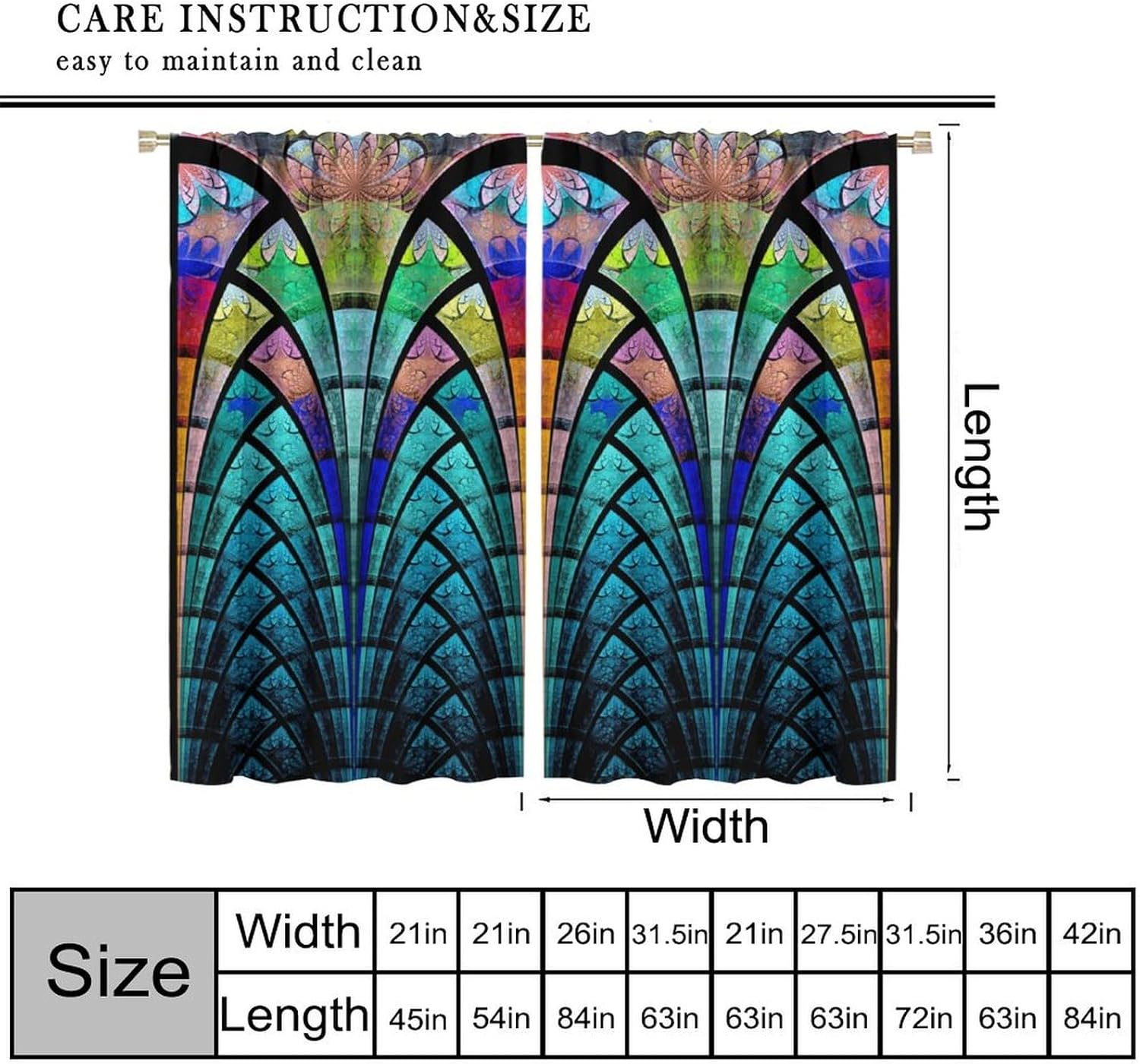 Stained Glass Curtains,Retro Design Style Colorful Abstract Art Home Decor Drapes for Bedroom Living Room Kitchen Window Treatment 2 Panels Set Total Size 55" W X 63" L Inch
