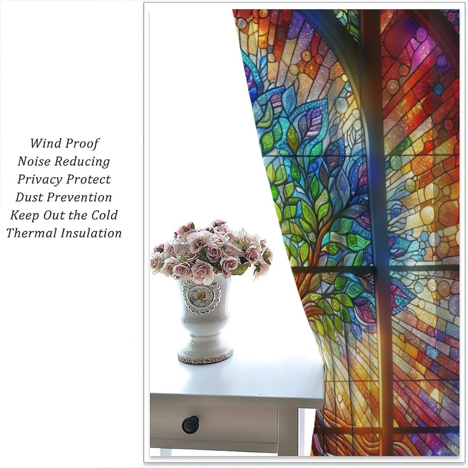 Stained Glass Curtains,Tree of Life Colorful Abstract Art Home Decor Drapes for Bedroom Living Room Kitchen Window Treatment 2 Panels Set Total Size 72" W X 63" L Inch