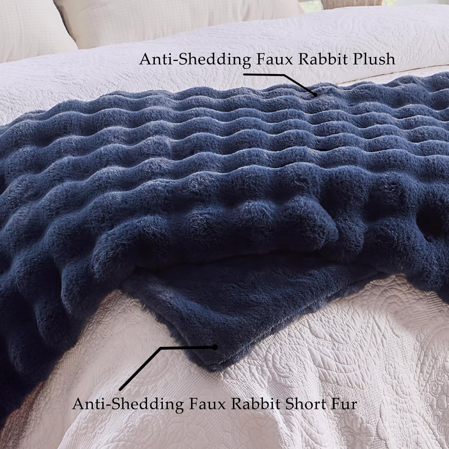 - Luxury Double-Sided Faux Fur: Unlike regular faux fur blankets, ours features double-sided faux rabbit fur. One side showcases a 3D bubble faux fur with a full and dimensional bubble texture, while the other side offers smooth and ultra-soft faux fur. Compared to regular crystal velvet, it's more static-resistant, softer to the touch, and warmer against the skin.