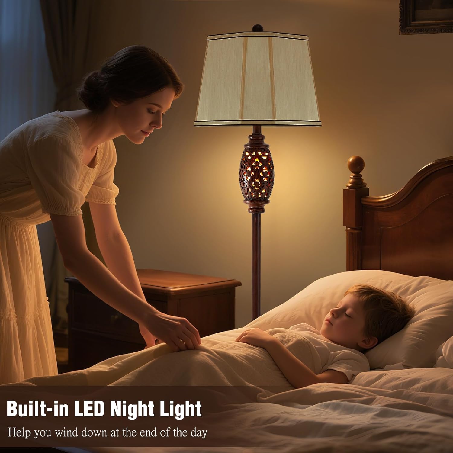 - EXQUISITE BROWN HOLLOW-CARVED DESIGN:Crafted from high-quality resin with rich brown tones, this lamp features intricate hollow-carved patterns that emit a soft, ambient glow. Hand-finished details and timeless craftsmanship create an elegant centerpiece for traditional or vintage-inspired interiors.