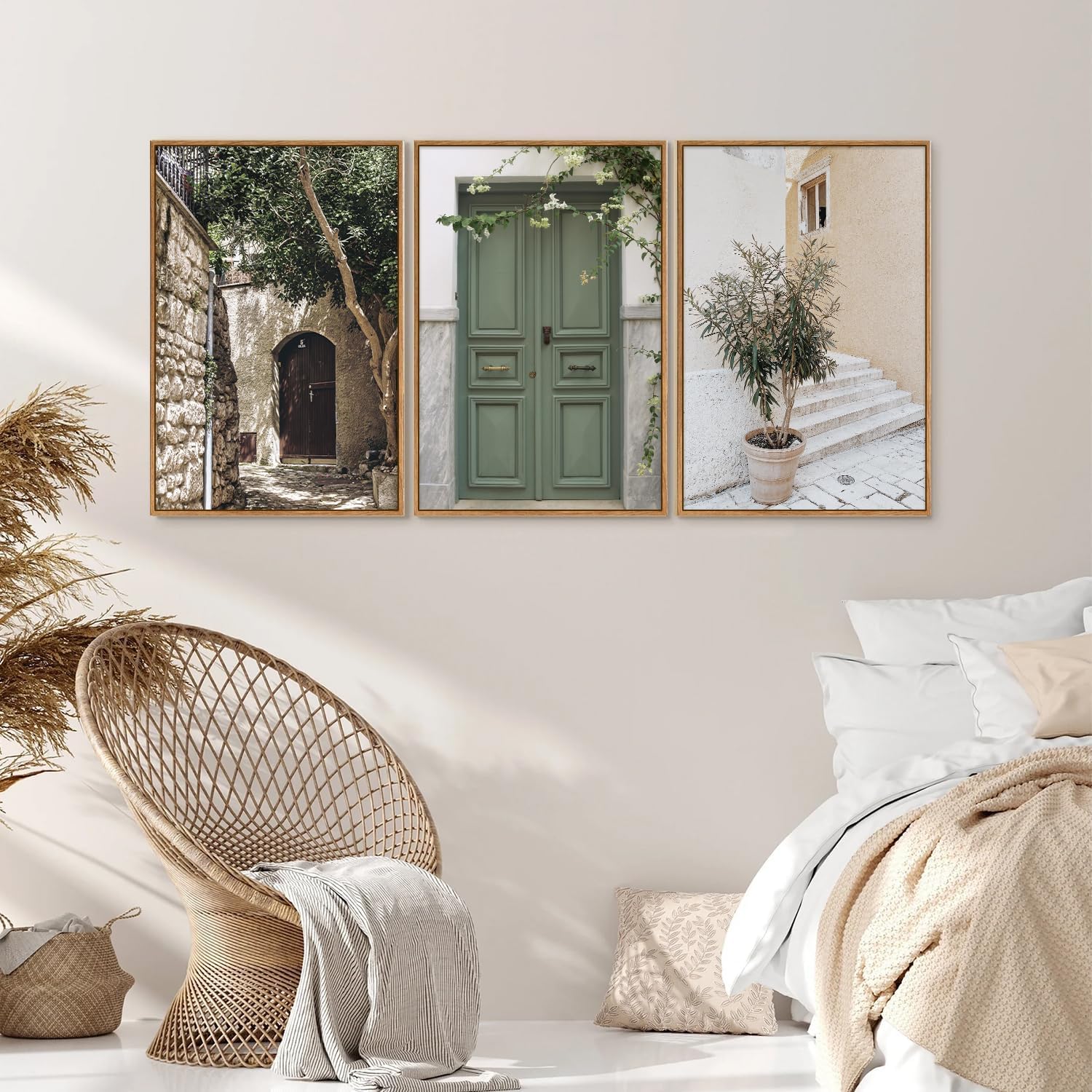 - Charming Italian Landscape Design:Immerse yourself in the rustic beauty of Italy with this stunning three-piece canvas set. Featuring elegant olive green trees and timeless architecture, it adds a touch of Mediterranean charm to any space.
