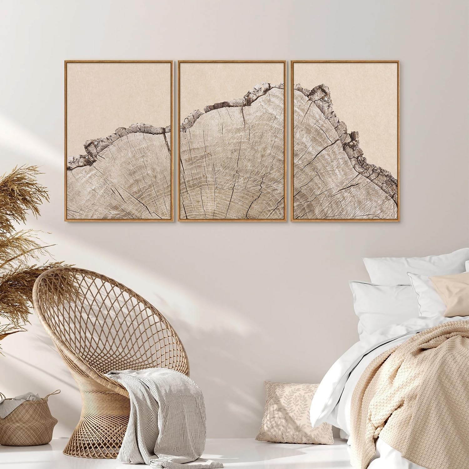 SIGNINART Large Tree Ring Framed Canvas Wall Art Set, Rustic Beige Wooden Wall Decor, Neutral Nature Wood Stump Artwork, Modern Art Prints for Bedroom Living Room Office 24"x36"x3