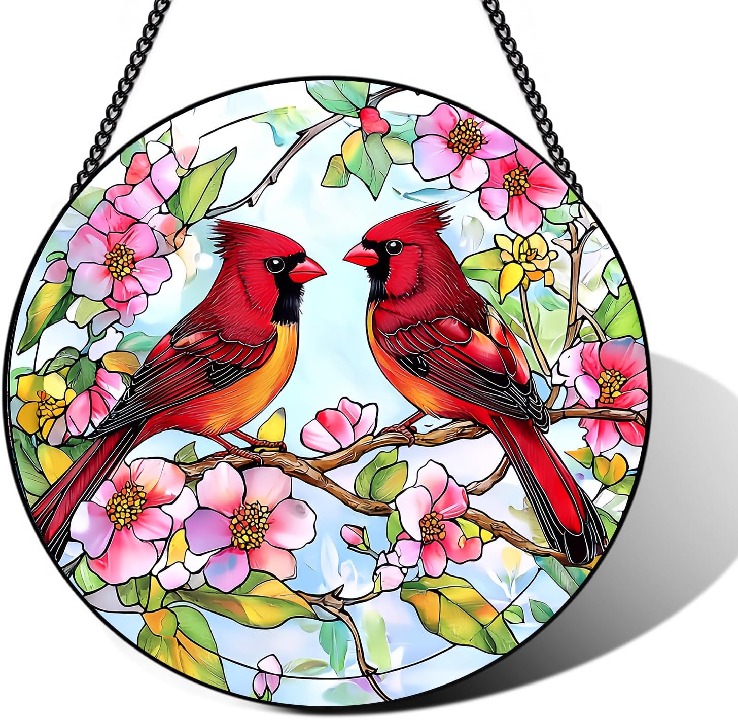 - Exquisite Design: Finished with vibrant stained glass, this Red Cardinal suncatcher captures sunlight beautifully, adding warmth to any space