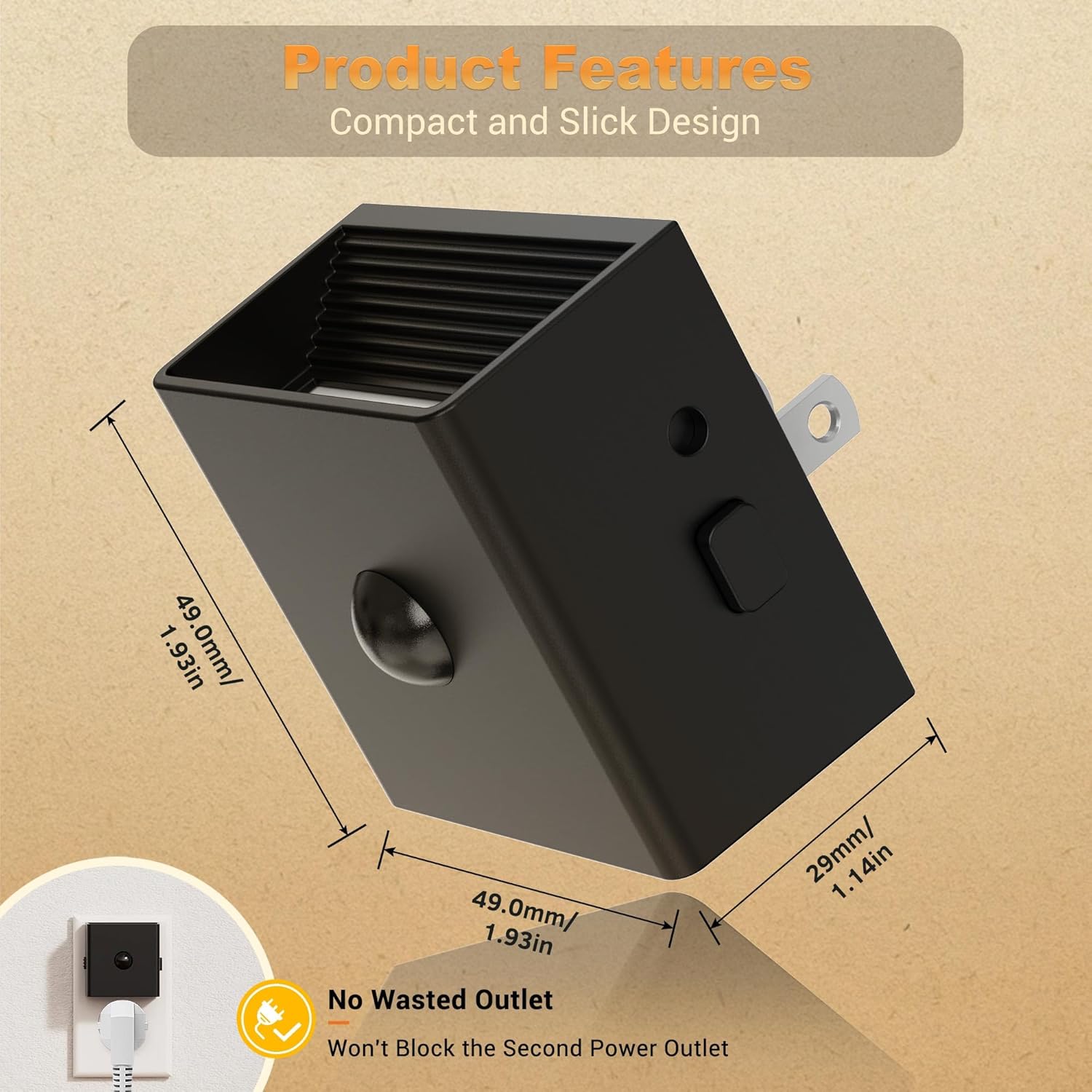 - Modern and Minimalist Design :Designed with a sleek black frame, this modern night light blends seamlessly with any decor. Its compact and sophisticated appearance ensures it doesn't obstruct the bottom outlet, making it both stylish and functional for any room