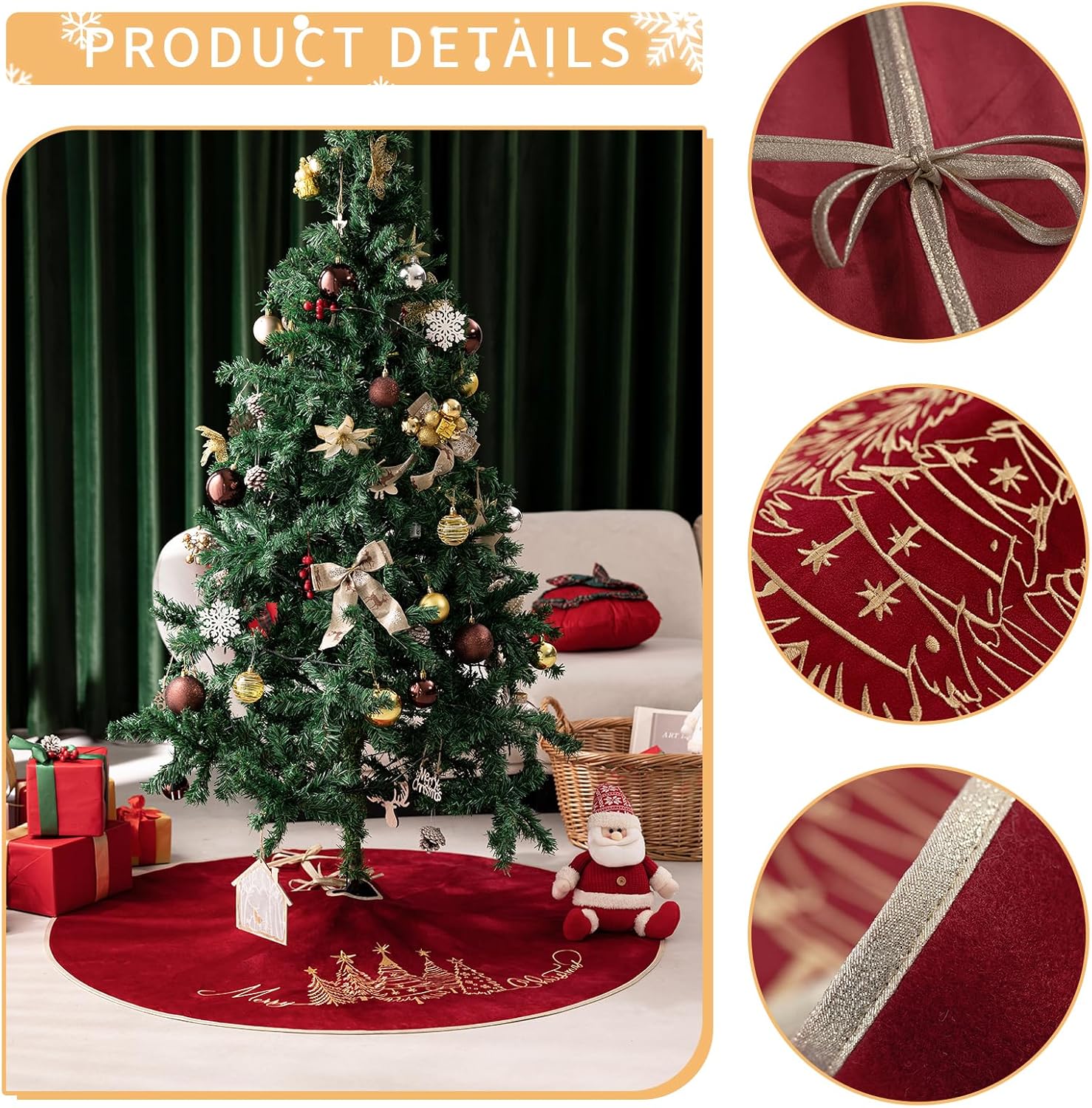 - [Elegant Velvet Fabric]: Made from premium soft velvet, this tree skirt brings rich texture and warmth to your holiday display.