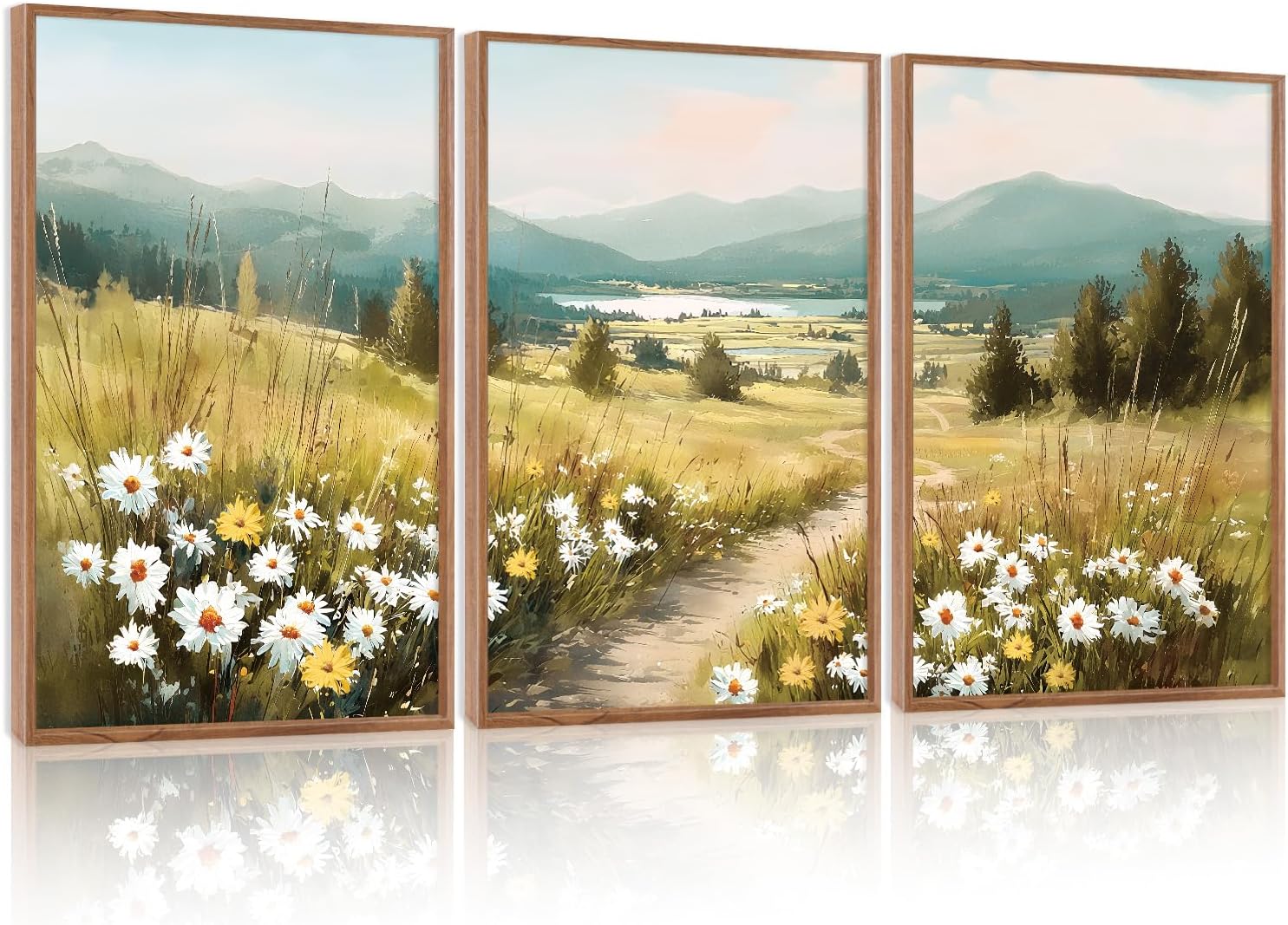 - 【Rustic Field Wall Art】This set of countryside wall paintings captures the intricate details of grassland,lake,mountain and flower patterns.The neutral tones complement the modern and rustic decorations,and it can meet your decorative needs for fashionable and multi-functional home designs