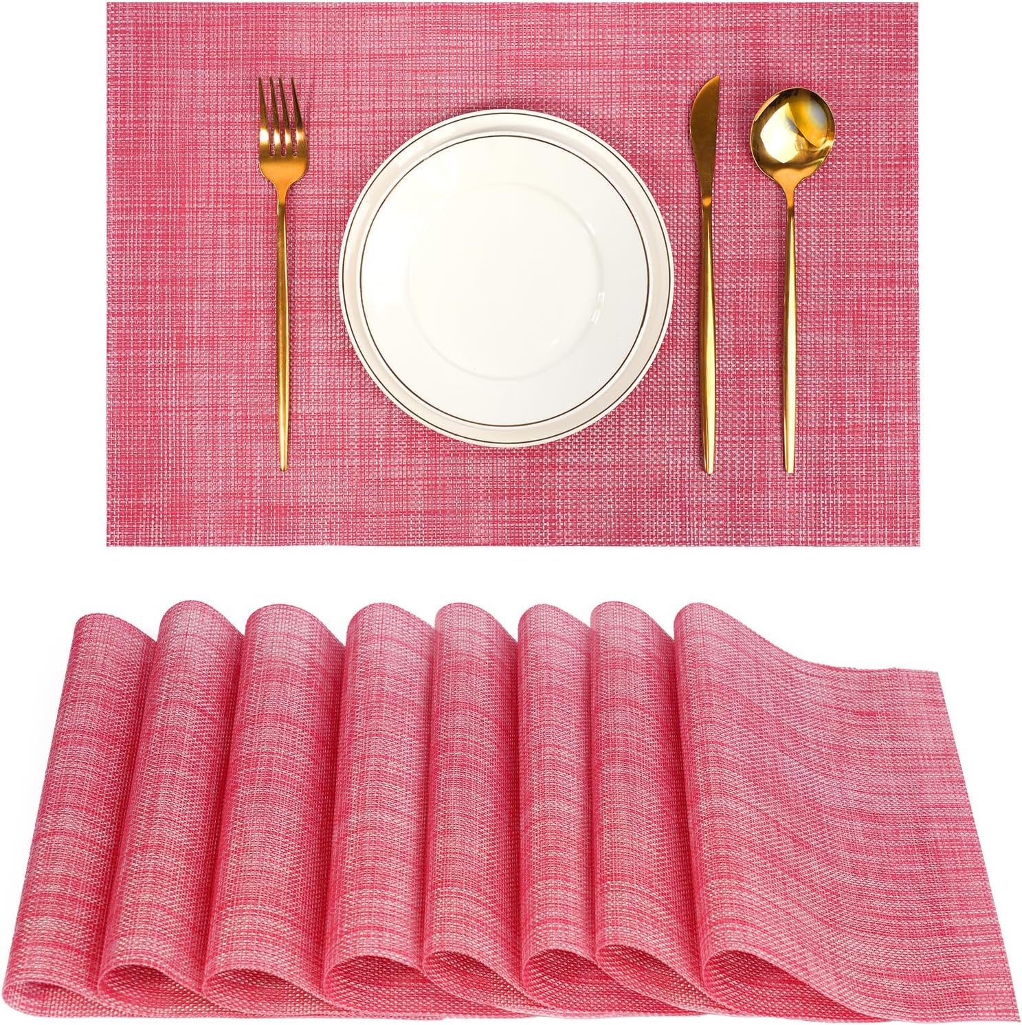 Placemats Set of 8,Non-Slip PVC Weave Table Mats Easy to Clean,Heat Resistant Place Mats for Kitchen Dining Table Decoration Indoor Outdoor,Red