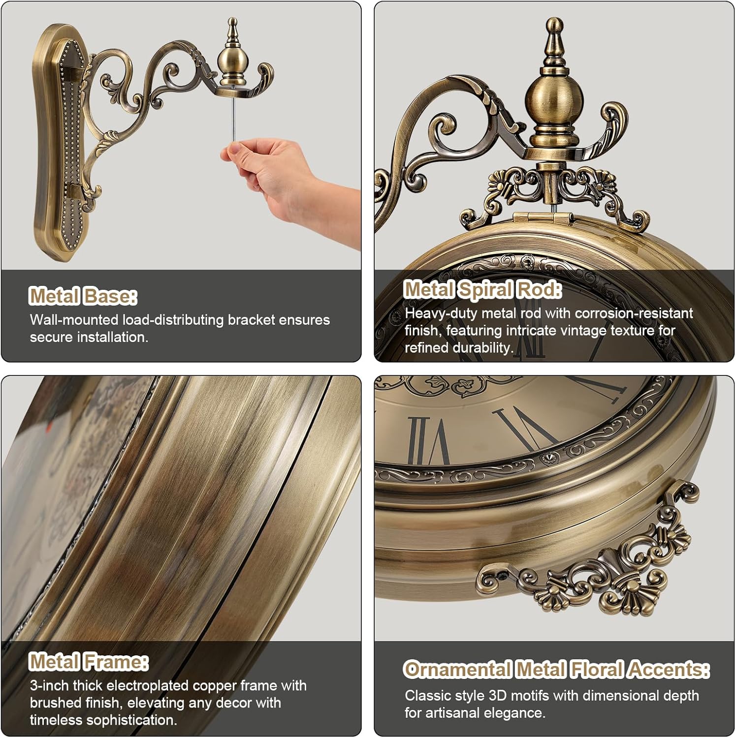 - ⚒️ [Premium All-Metal & Glass Construction] Experience unmatched durability and sophistication. Meticulously crafted from solid metal and glass, this wall clock features a robust bronze frame enhanced by a hand-polished, brushed copper plating finish. The glass-covered faces protect the elegant dials, ensuring this antique clock remains a timeless piece of functional art.