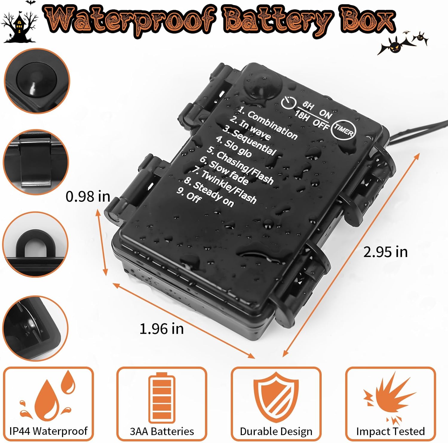 - 【Smart Timer Function】Automatically turns on for 6 hours and off for 18 hours daily—no manual switching needed. Saves energy while keeping your Halloween decor glowing all night!