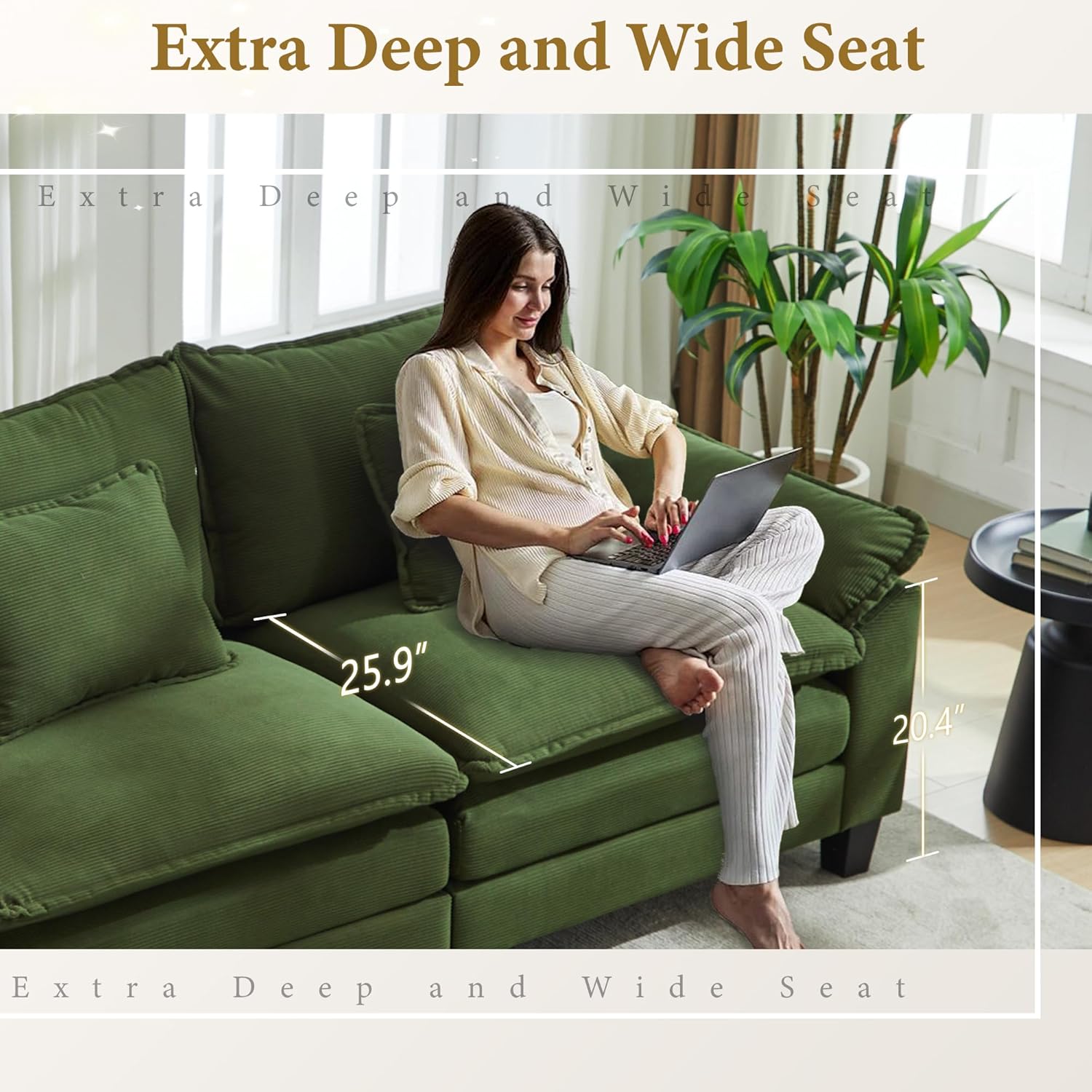 - Soft and Skin Friendly: This sofa is made of Corduroy fabric, which is soft and gentle to the skin.The cushions are super soft, sitting on them is like being wrapped in cotton, soft and comfortable!