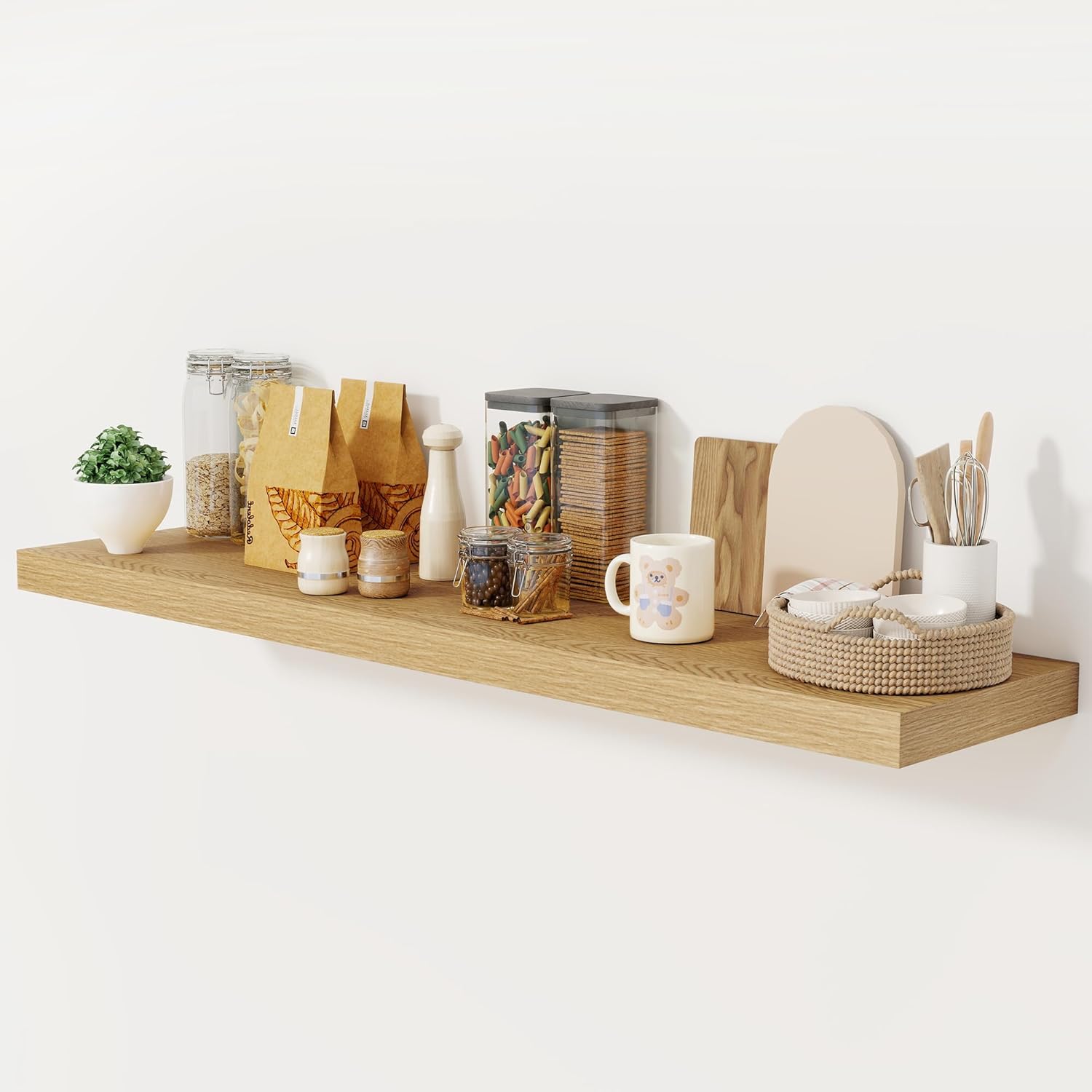 Fun Memories 55 Inch Floating Shelves, 12 Inch Deep Floating Shelf for Wall, 55 x 12 Large Floating Shelves for Fireplace Mantel, 2 Inch Thick Wall Shelf for Living Room, Bedroom, Oak Color, 1 Pack