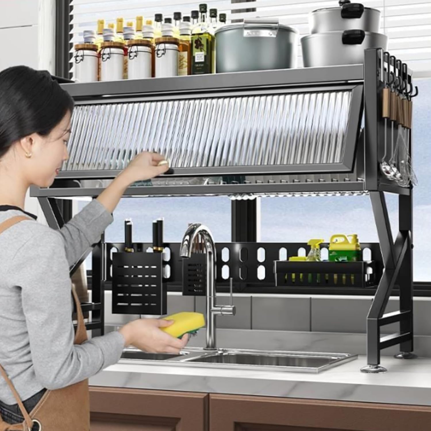 - Premium Materials, Durable & Rust-Resistant:Crafted from high-quality, durable materials, the drying rack kitchen over sink has a stable structure, allowing this over the sink dish drainer drying rack to easily hold heavy dishes. Its rust-resistant coating extends its service life, making it a reliable daily kitchen storage and drying solution.