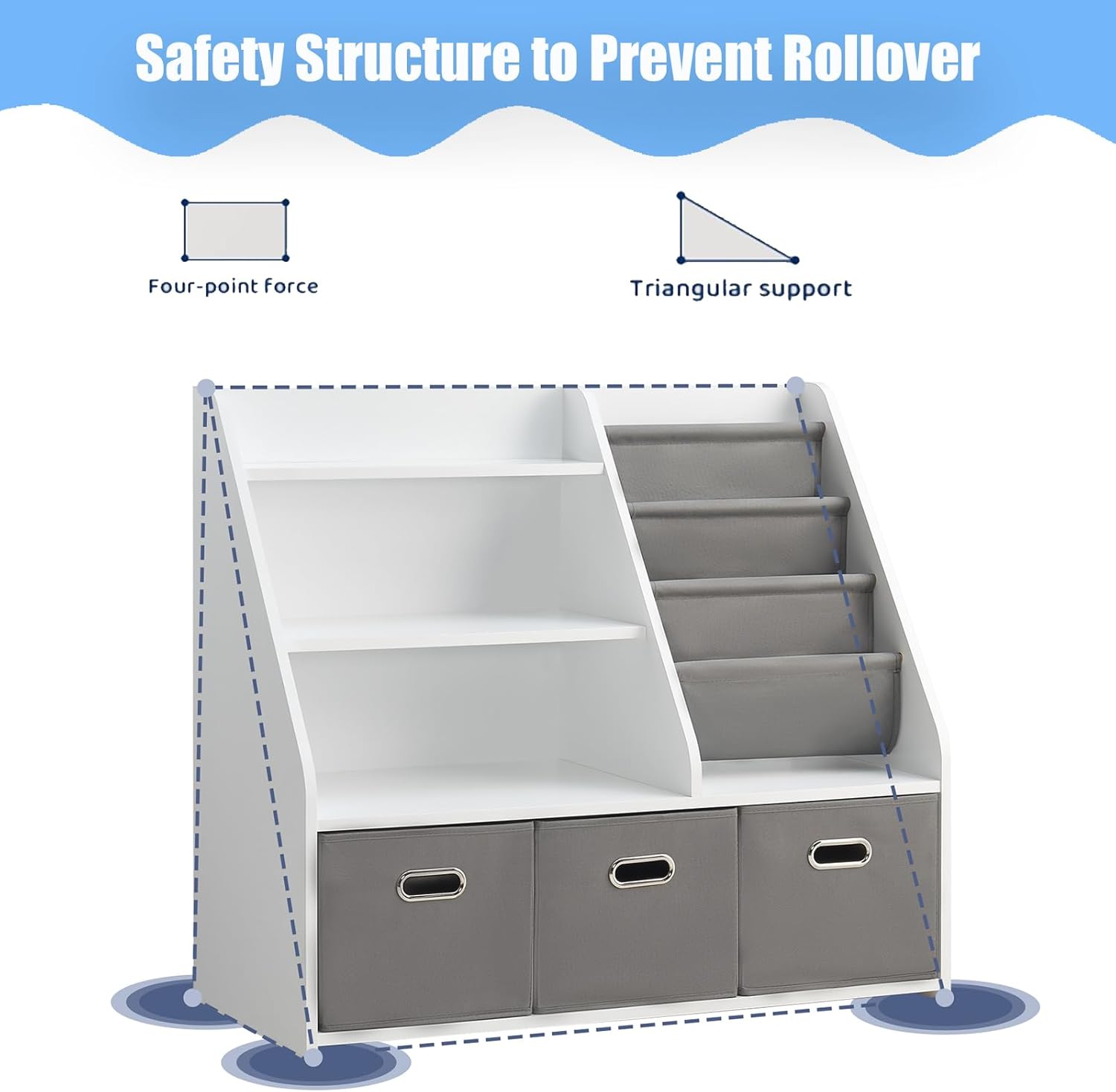 - ⭐️ [Safe, Sturdy & Kid-Friendly Materials] Crafted from high-quality, eco-friendly engineered wood, this Montessori nursery bookshelf is built to last. Rounded corners and a stable triangular frame offer added safety for active toddlers and peace of mind for parents.
