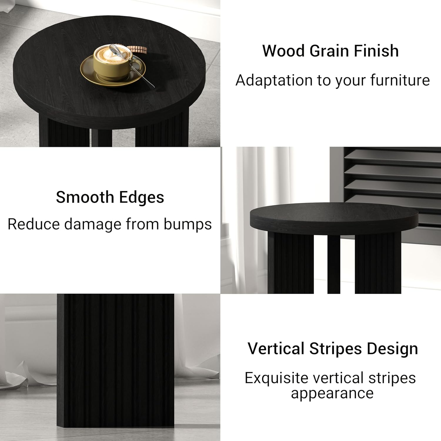 - Simple Style Round Table: The coffee table set of 2 features a solid wood tabletop and thick legs for a sophisticated look and durability. Our small round coffee table set has a sleek and modern design, the tabletop is round in design, and the overall construction is simple, exuding a modern style, which is perfect for precious family gatherings and creating pleasant moments.